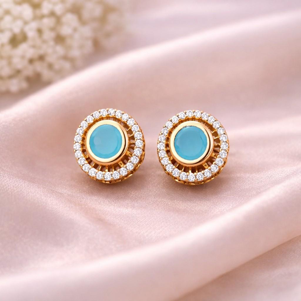 Designed with a classic round silhouette, the polished 18K gold setting adds warmth and sophistication, while the luminous blue tone brings a calming, graceful charm. The stud design ensures comfortable wear, making these earrings perfect for both everyday elegance and special occasions.